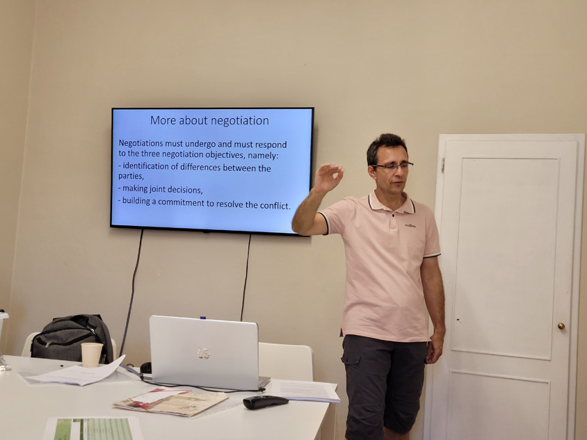When resolving a given conflict we are advised to focus on the problem, not on the personalities involved. One should be courteous but without sugar coating the problem. It is also important to keep our conversations or decisions strictly confidential and come up with a resolution together with the participants. We also talked about building and strengthening relationships with our students to be able to act quicker in either preventing or resolving conflicts with more success. Skilfully practiced active listening can also be a great help, so we conducted exercises in pairs on how to maintain eye contact, be attentive, patient, and keep an open mind without interrupting the other person.