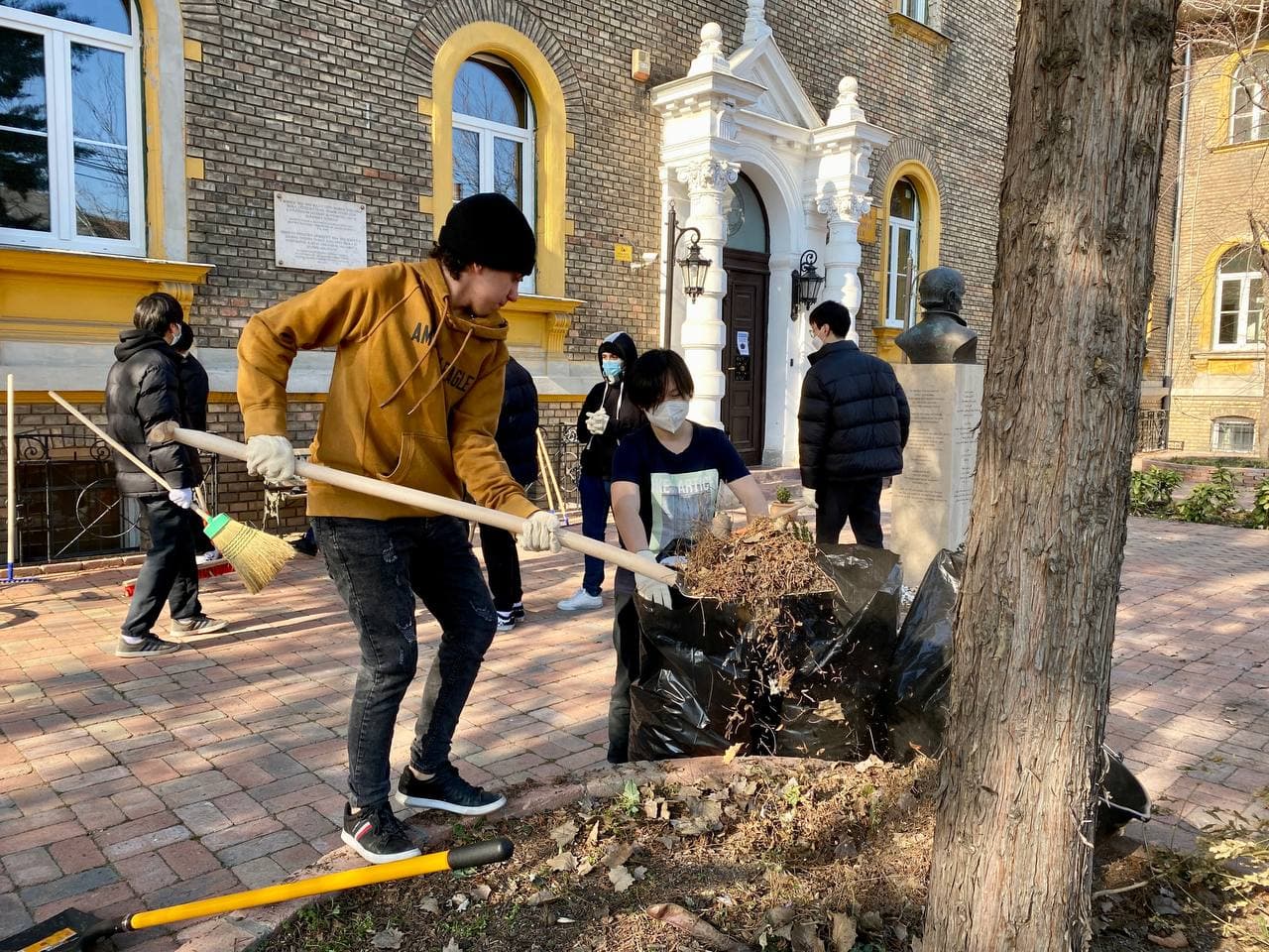 On February 14th, Groups of AIC high school students participated in raking leaves and cleaning up the Schoolyard.