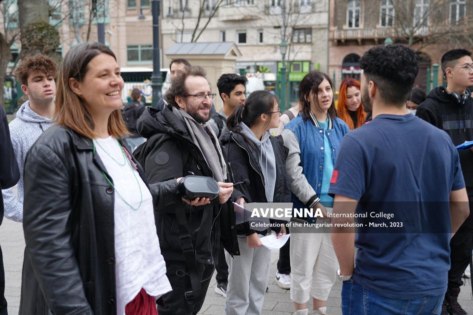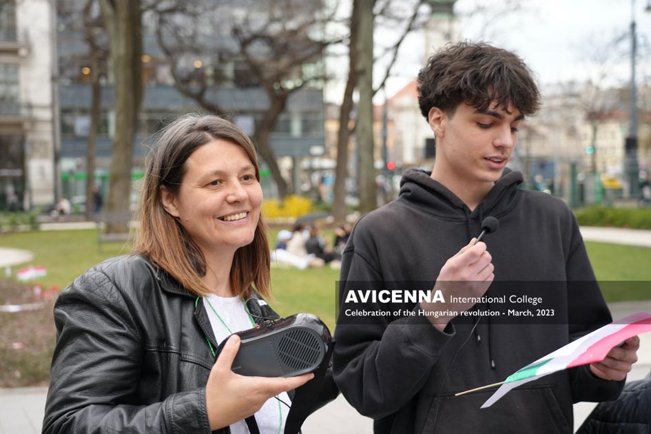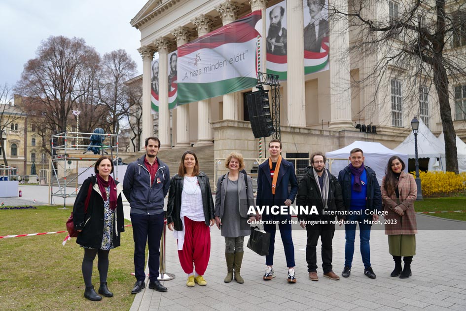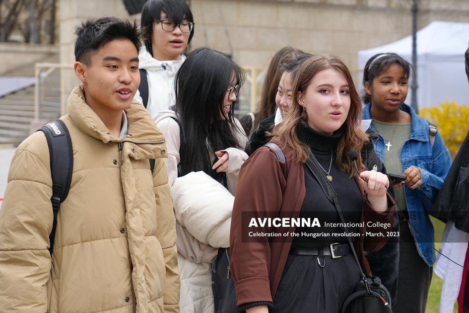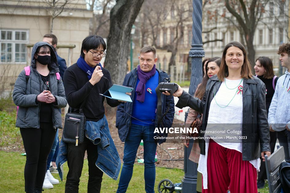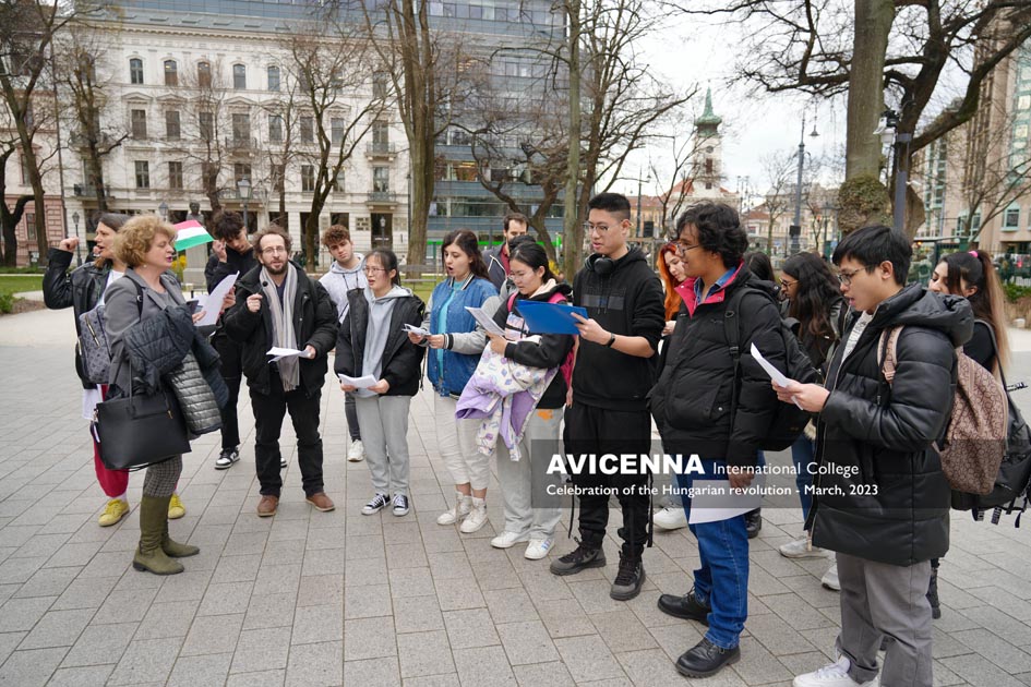 On March 14th, 2023, Avicenna students gathered on the steps of the National Museum in Budapest to recite Sándor Petőfi’s poem, “Nemzeti dal” or “National Song”. The event was organized to commemorate the 1848 Hungarian Revolution, which began on the same steps of the National Museum, where Petőfi himself recited his poem to a crowd of revolutionaries. The recitation by Avicenna students aimed to pay tribute to Petőfi’s poem and its significance in Hungarian literature and national identity. The students, who come from various countries, including Hungary, recited the poem in Hungarian, showcasing their commitment to the country’s culture and history. The recitation was also an opportunity for the students to connect with Hungary’s literary and cultural heritage, as well as to learn more about the country’s history and national identity.